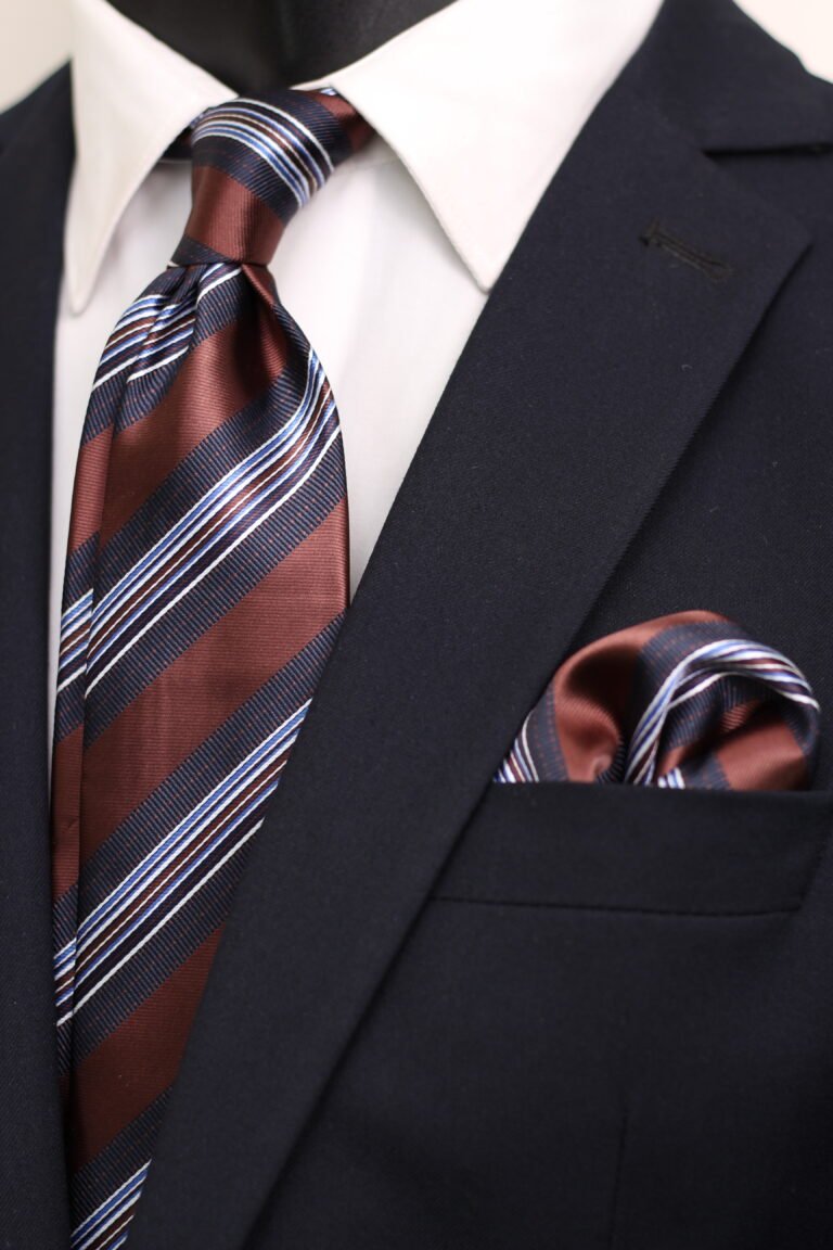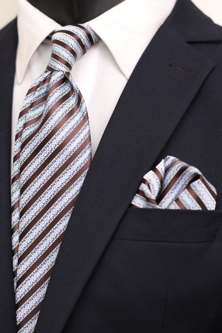 Stripe Jaquard Neck Tie With Hanky