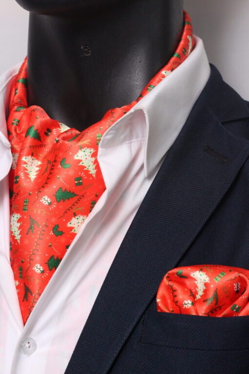 Things are often today more casual, and an ascot tie is a great way to not look sloppy but elegant. In terms of patterns and strong colors, you can be brave because it’s a more casual accessory and of course, you always want to try to match the ascot with your look. So, with a patterned cravat like this one it’s a good idea to wear a solid shirt or a small patterned shirt, with a solid jacket to create a harmonious outfit.