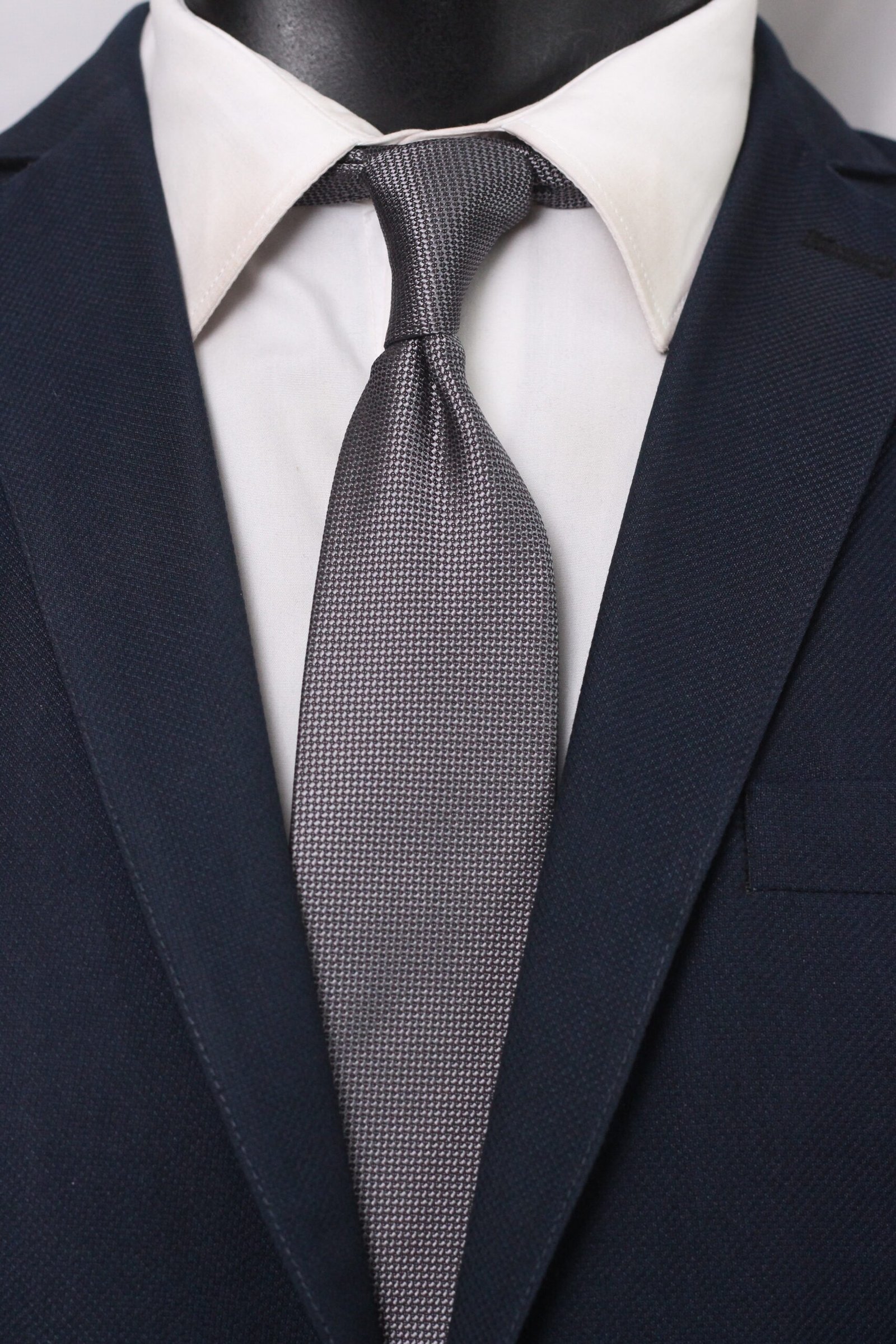 Showcase your impeccable taste and attention to detail with this elegant dark grey oxford pattern tie.