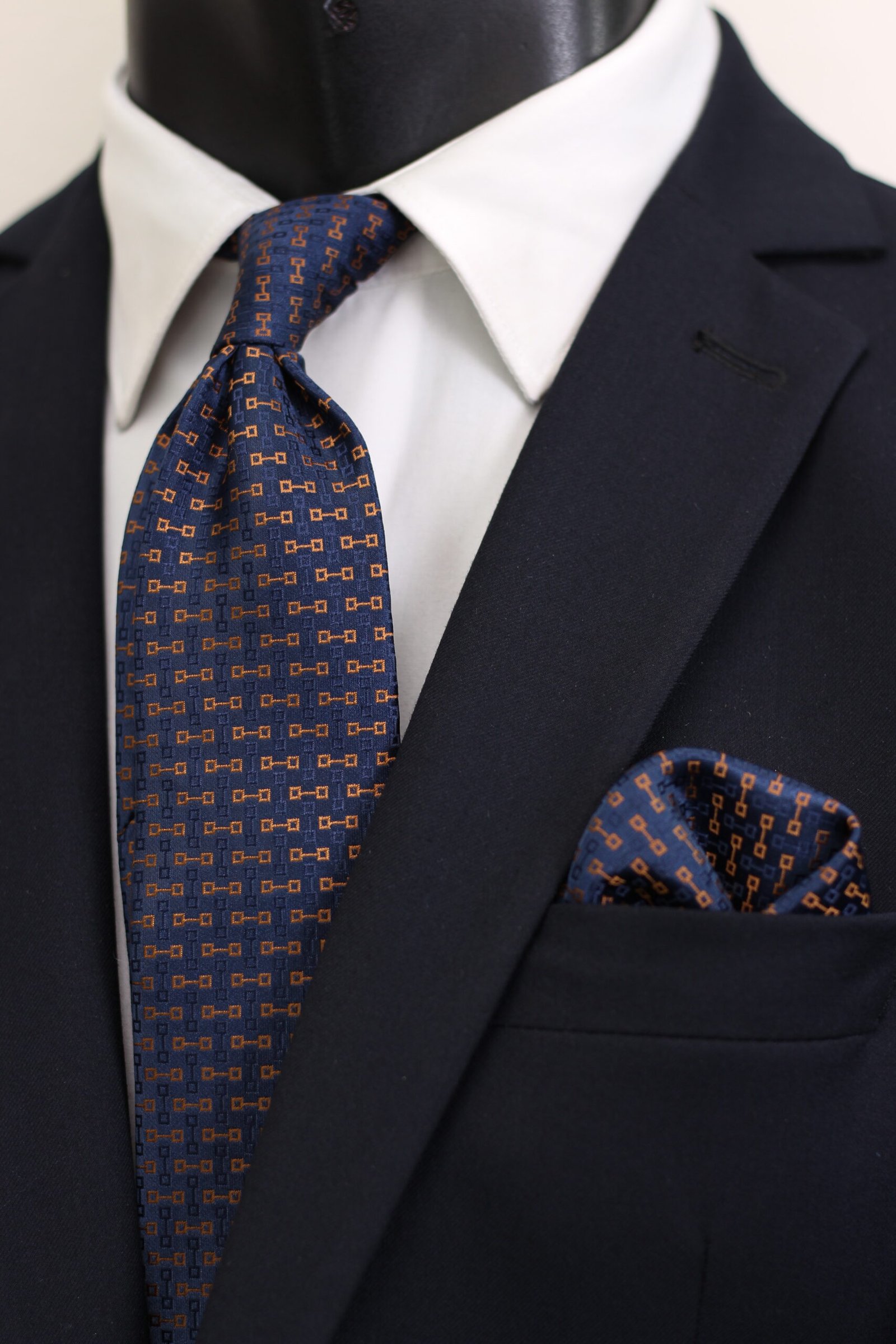 Make a striking statement with this exquisite patterned men’s tie and complementary pocket square.
