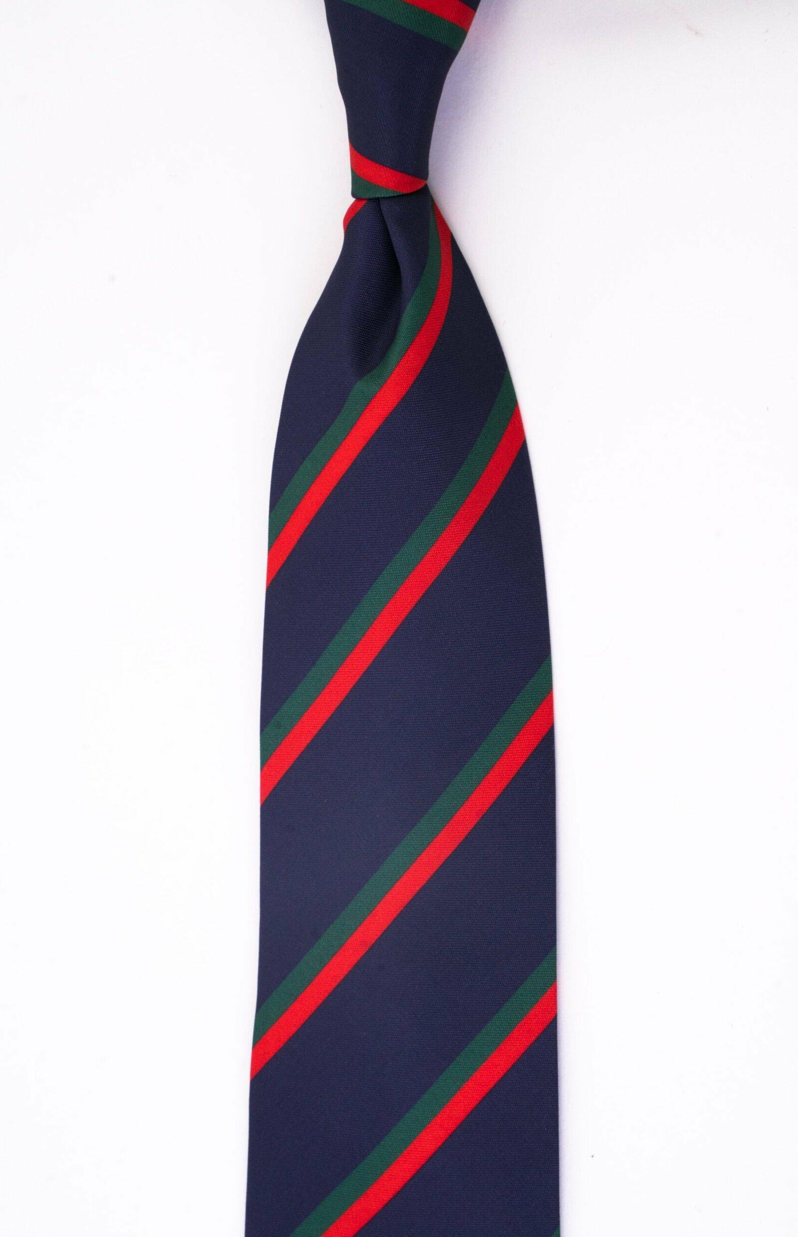 HomeStripe Jaquard Neck TieStripe Jaquard Neck TieDescriptionStylish navy blue striped necktie for men – featuring elegant red and green diagonal stripes. Perfect for business attire, weddings, and smart casual looks.Tie SizeMedium 7 cmRegular 8.5 cm