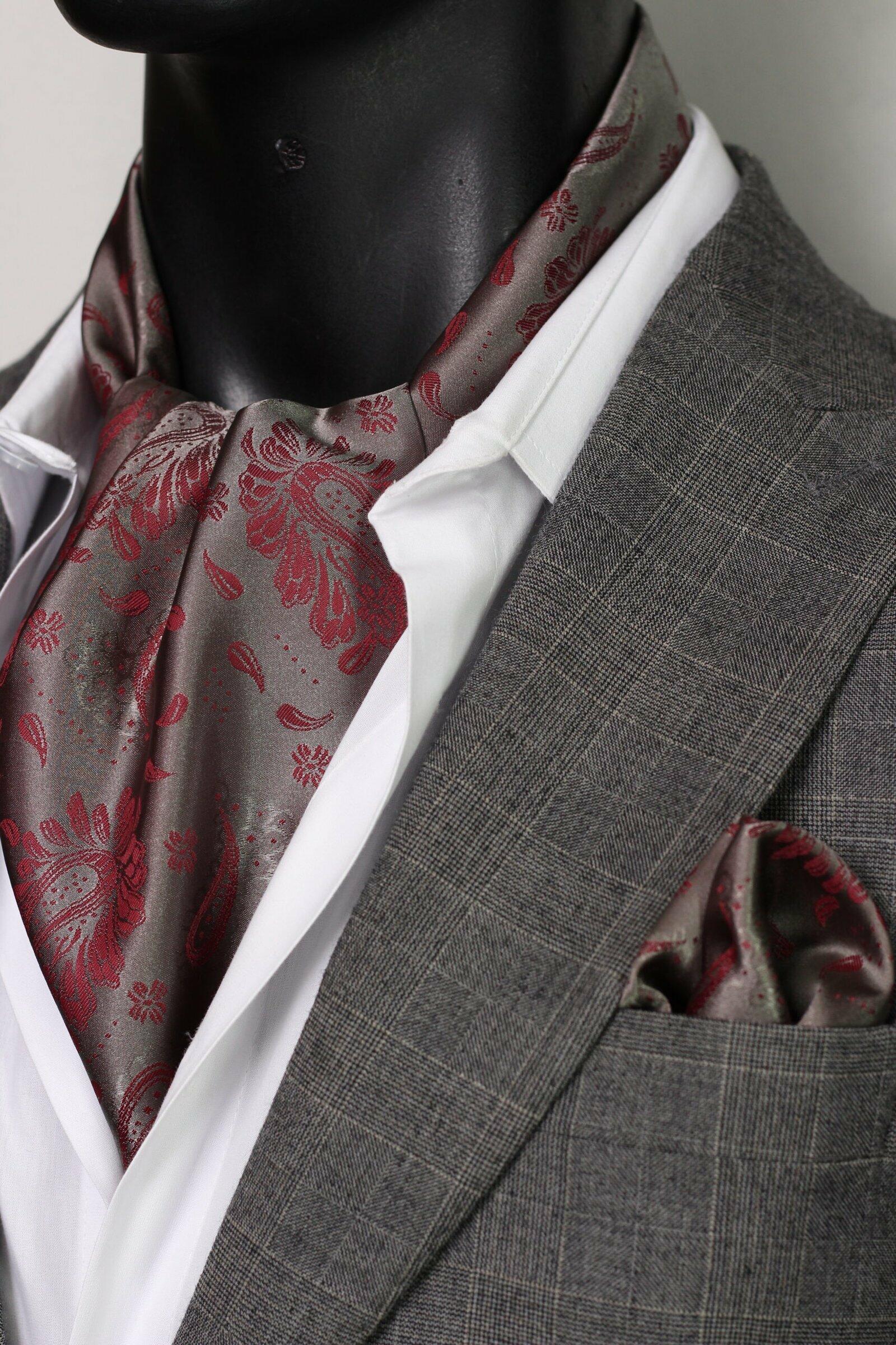 HomeGrey Ascot Paisley with HankyGrey Ascot Paisley with HankyDescriptionCommand attention with this luxurious grey and red floral patterned ascot scarf for men. A sophisticated neck accessory featuring a distinctive floral pattern, it's perfect for weddings, formal events, and elegant style .