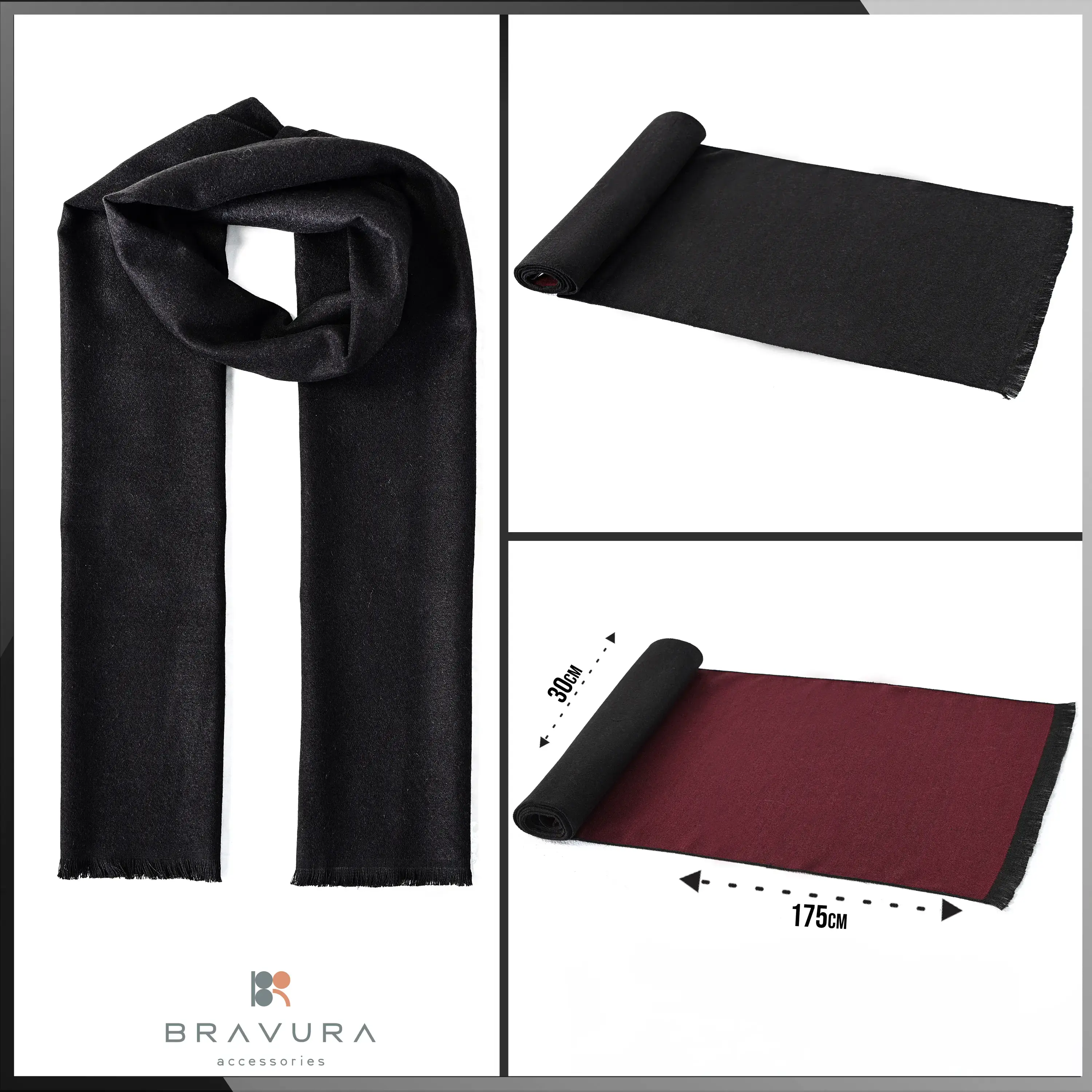 bravura | Reversible Wool Scarf – Black