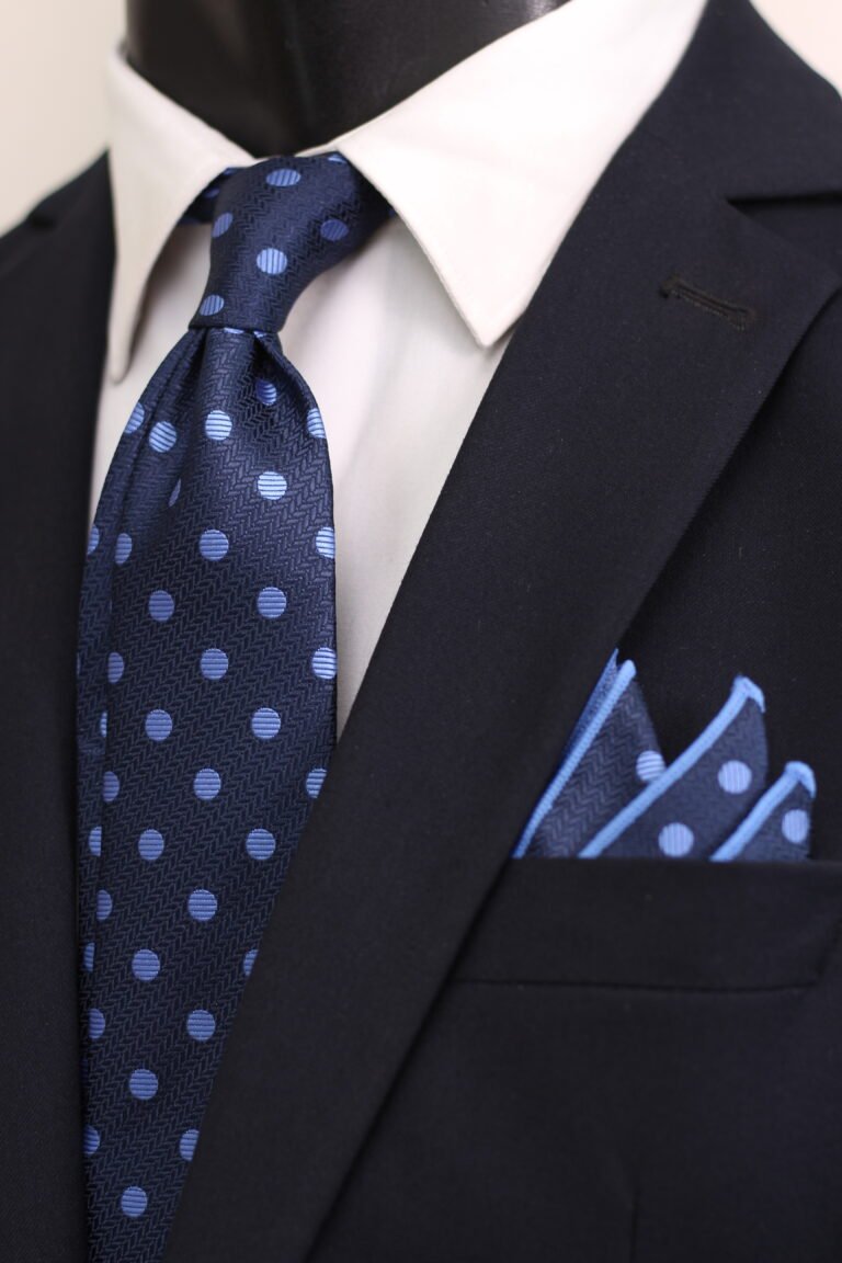Navy and Light Blue Large Polka Dot Tie and Pocket Square